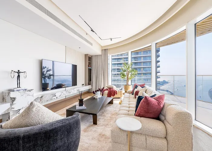 To enjoy your vacation in Dubai, stay at the beachfront 219 m² Luxurious Bliss - 3-Br Plus Maids - Grand Bleu By Elie Saab Dubai apartment, which is 3.1 km from the Dubai Marina Yacht Club and nearly 25 minutes' walk from the Dubai Water Canal. This spacious apartment offers a terrace with seaside views of the pool.